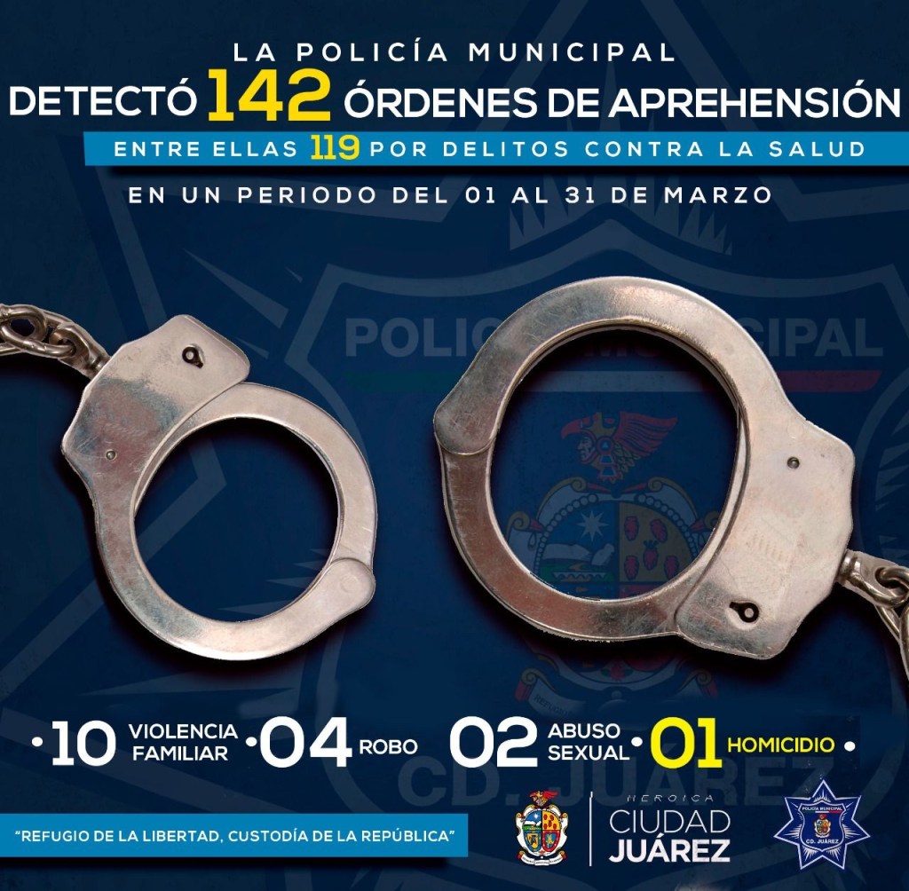 ORDENES. Y un ejemplo del trabajo que realiza esta dependencia es el extraordinario número de órdenes de aprehensión que se han logrado obtener. Tan solo en el mes de marzo se ejecutaron 142 órdenes de aprehensión, de las cuales 119 son por delitos contra la salud, 10 por violencia familiar, 4 por robo, 2 por abuso sexual y 1 por homicidio, pero es necesario mencionar que durante el mes de febrero la policía municipal también logro asegurar a 100 individuos que contaban con orden de aprehensión. Sería interesante conocer cuántas órdenes son ejecutadas por los investigadores de la FGE, pues cuentan con una Coordinación dedicada exclusivamente a este trabajo.