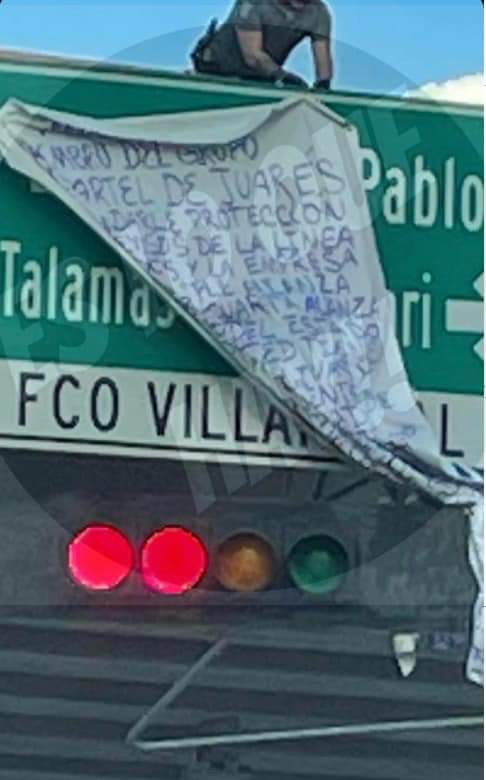 MANTA. Por cierto el miércoles se pusieron mantas en dos puentes de la ciudad, uno en la avenida Tecnológico y Ejército Nacional y otra en la Francisco Villarreal y Teófilo Borunda dirigidas a la Gobernadora Maru Campos, las cuales dicen textualmente lo siguiente: “Maru Campos, miembros del grupo del cartel de Juares deje de darle protección a los mugrosos de la línea los Mexicles y a la empresa llamados triple alianza mas bien cuarta alianza con el gobierno del Estado de Chih. Gober usted tiene al comandante olivas y a soto Silva al frente de los ceresos del estado ellos som línea y usted lo sabe y por medio de ellos la triple opera desde adentro de los ceresos generando multihomicidios, secuestro cobro de cuotas y trafico de personas generándole al gobierno del Estado ganancias millonarias de droga e indocumentados estatales municipales y ministeriales le toman foto a la ciudadanía y a su credencial para pasar la info a los de la line y proteger a la colonia anapra y centro para que todos los malandros operen libremente: corruptos.” La estamos publicando exactamente como está escrita.