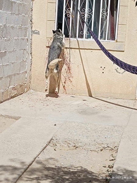 Ciudad Juárez.- Un ciudadano denunció la muerte de un perrito de raza Husky que estaba amarrado a la ventana de un domicilio ubicado en la calle Rivera de la Pradera, número 2708-28, en Riveras del Bravo. El animalito presentaba severas heridas en sus patas y al parecer estaba siendo ahorcado por la cadena que tenía.