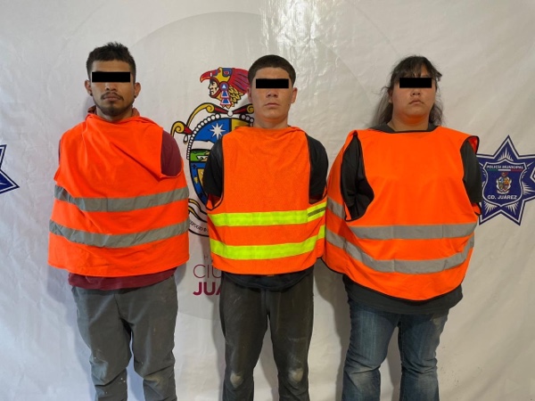 Ciudad Juárez.- Elementos de la Secretaría de Seguridad Pública Municipal arrestaron a Cinthia Carolina C. P. de 19 años, Adrián Omar P. C. de 20 años, Jesús A. F. de 21 años de edad y un adolescente de 17 años de edad, por su presunta responsabilidad en la comisión del delito de homicidio y delitos contra la ley federal de armas de fuego y explosivos.