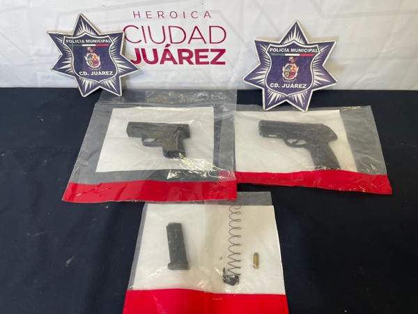 A ambos se les aseguró dos armas de fuego calibre 9 milímetros, además que fueron sellados por testigos de haber asesinado momentos antes a una persona en las calles Mijes y Mayos de la colonia Azteca, por lo que serán investigados por el delito de homicidio.