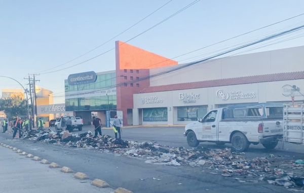 Ciudad Juárez.– Esta madrugada se reportó un regadero de basura en el bulevar Manuel Gómez Morín, frente al fraccionamiento Rincones de San Marcos.