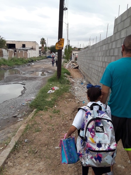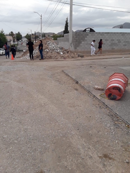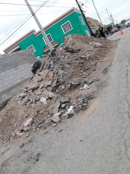 Ciudad Juárez.- Vecinos de la colonia Francisco I. Madero, padres de familia que acuden a dejar sus hijos a la escuela primaria Constitución #2514 y el jardín de niños Chihuahua, así como autoridades escolares de ambos planteles, denuncian que la JMAS Juárez desde hace tres meses destruyó las calles a la redonda para “reparar” la tubería de la zona y dejaron las calles intransitables con montañas de escombros. Contando además con un problema severo de aguas negras.