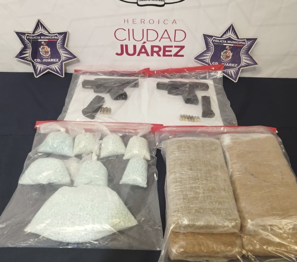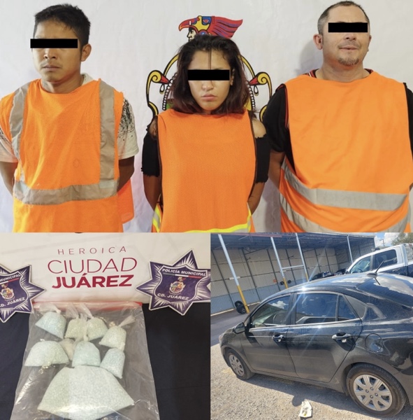 Ciudad Juárez.- Elementos de la Secretaría de Seguridad Pública Municipal arrestaron a Perla Yudith R. G. de 25 años, Cruz Saúl H. C. de 30 años y Mario Iván O. A. de 37 años, por su presunta responsabilidad en la comisión de delitos contra la salud y contra la ley federal de armas de fuego y explosivos.