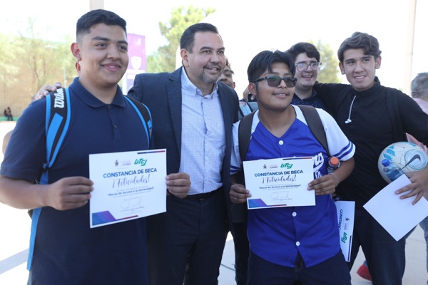 Ciudad Juárez.– Estudiantes de nuevo ingreso de la Universidad Tecnológica de Ciudad Juárez recibieron una beca para el pago de su primer semestre a cursar en la carrera, beneficiándose así 977 alumnos y alumnas.