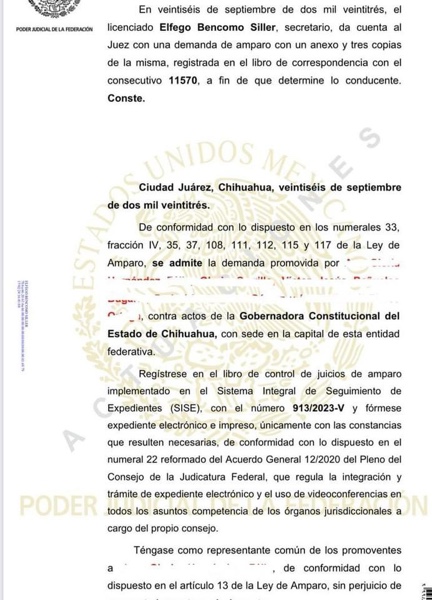 Ciudad Juárez.– Un juez federal admitió un recurso promovido en contra de la gobernadora Maru Campos Galván, por no haber dado respuesta a la solicitud de audiencia pública solicitada a la administración del Parque Central.