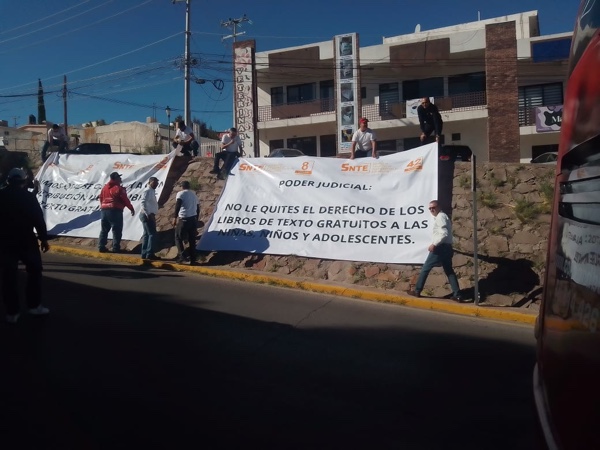 Chihuahua, Chihuahua.- Este día en la ciudad de Chihuahua más de 900 maestras y maestros realizan un plantón en el Poder Judicial de la Federación protestando por la falta de entrega de los libros escolares.