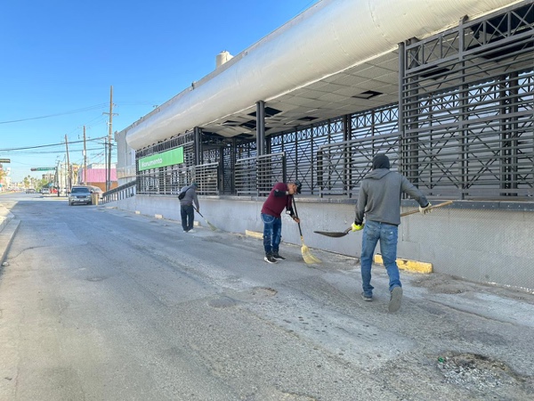 Ciudad Juárez.- Varios paraderos del BRT ubicados en la zona centro, fueron limpiados por la dirección de servicios públicos municipales , siendo la dirección de limpia la encargada de dar limpieza, ya que al no estar en uso y sin quien les de mantenimiento, empleados municipales tuvieron que darles una barrida.