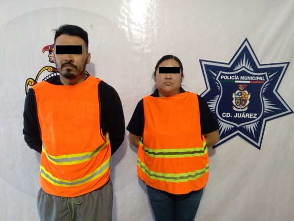Ciudad Juárez.- Elementos de la Secretaría de Seguridad Pública Municipal, realizaron la detención de Iván P. R. y Adriana B. C., por su presunta responsabilidad en la comisión del delito de abuso de confianza y/o lo que resulte.
