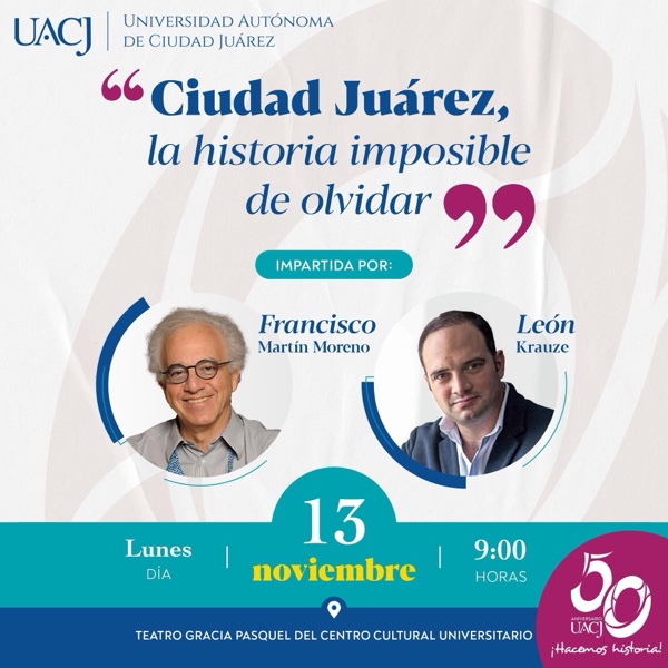 Ciudad Juárez.– El 13 de noviembre, en punto de las 09:00 horas, la Universidad Autónoma de Ciudad Juárez invitó a una plática con León Krauze y Francisco Martín Moreno, que lleva por nombre “Ciudad Juárez, la historia imposible de olvidar”.
