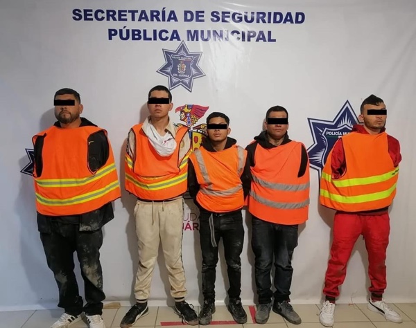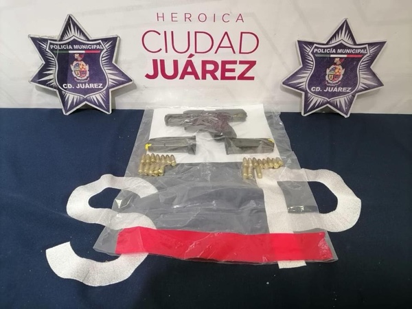 Ciudad Juárez.- Agentes de la Secretaría de Seguridad Pública Municipal capturaron a José Ángel M. H. de 19 años, Frannkkeny M. G. de 24 años, Mario P. S. de 43 años, Jesús Guerrero A. R. de 31 años y Chayanne Fernando C. G. de 35 años, por su presunta responsabilidad en la comisión de delitos contra la salud y delitos contra la ley federal de armas de fuego y explosivos.