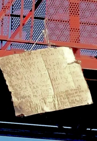 Ciudad Juárez.– Esta mañana fue localizado un mensaje amenazante colocado en el puente peatonal de la Avenida Tecnológico y Cesareo Santos de la colonia La Cuesta.
