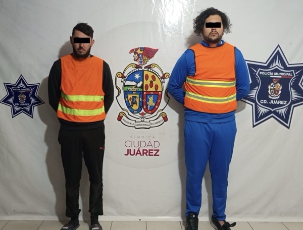 Ciudad Juárez.– La policía municipal realizó la detención de Juan Antonio G. H. de 35 años y Raúl C. P. de 30 años, por delitos contra la salud al tener posesión de 110 kilos de cristal.