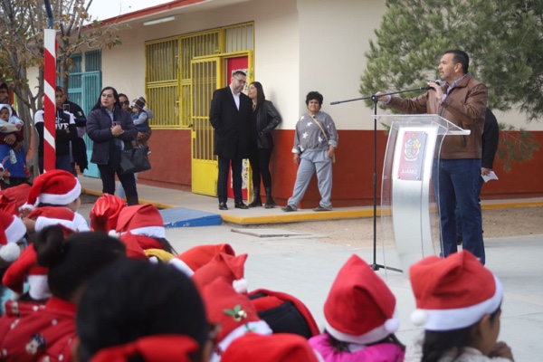 Ciudad Juárez.– Este día se volvió hacer la entrega dd cuatro escuelas públicas rehabilitadas a estudiantes de la primaria Mahatma Gandhi, el jardín de niños Graciela Hierro, la primaria Francisco I. Madero y el jardín de niños Simona Barba.