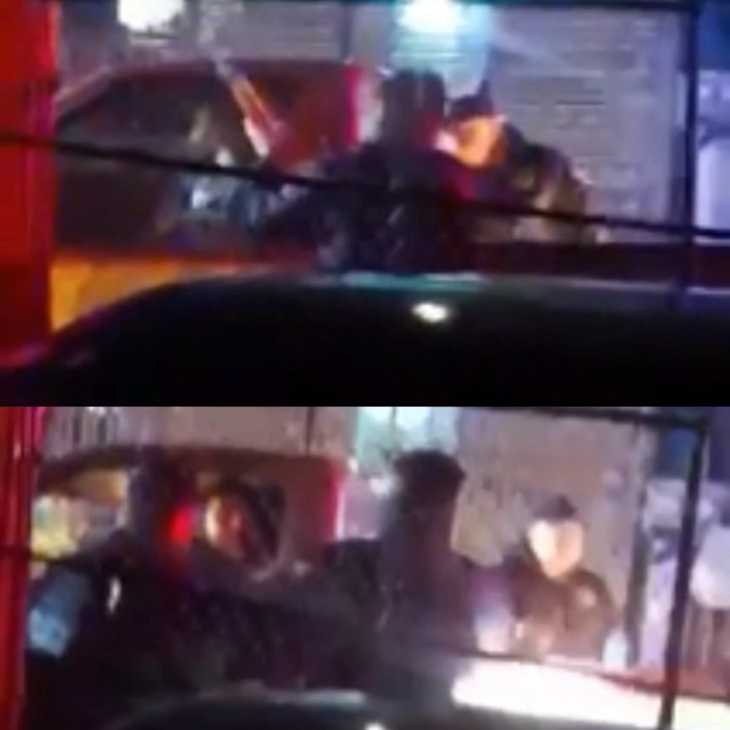El video que es grabado por la esposa del hombre alcoholizado, al exterior de su domicilio en la calle Portal del Mezquite del fraccionamiento Portal del Roble, se aprecia como los policías quiebran las ventanas de una pick up y obligan al hombre borracho a bajarse del vehículo, el cual se niega y forcejea con los agentes, a quien su esposa le grita “Fredy no les hagas nada, deja que te peguen”.