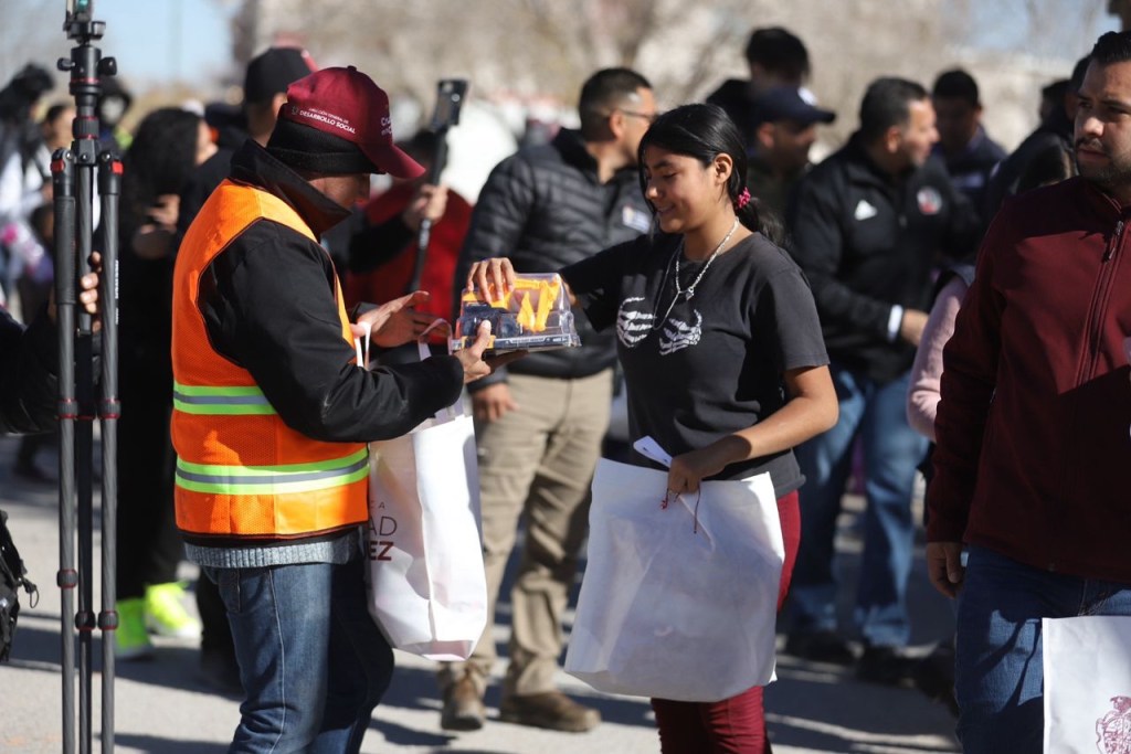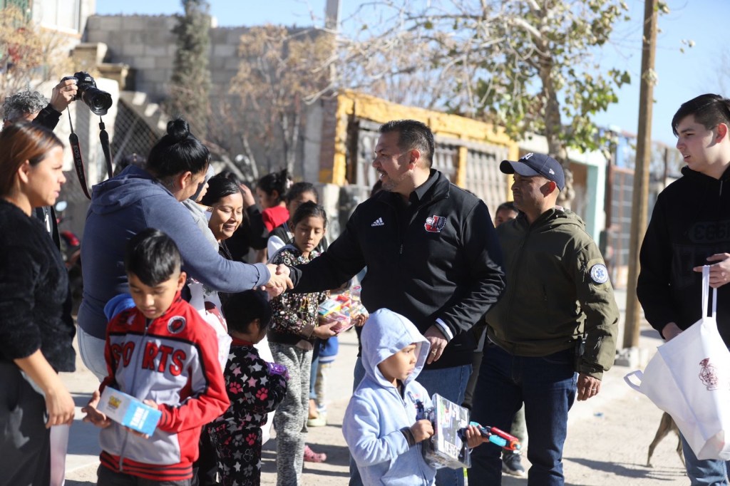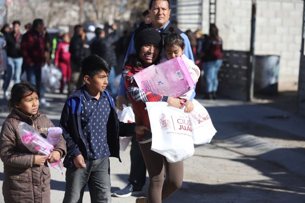Ciudad Juárez.– Este día habitantes del fraccionamiento Parajes de San Isidro recibieron dos mil cobijas y mil 300 juguetes.
