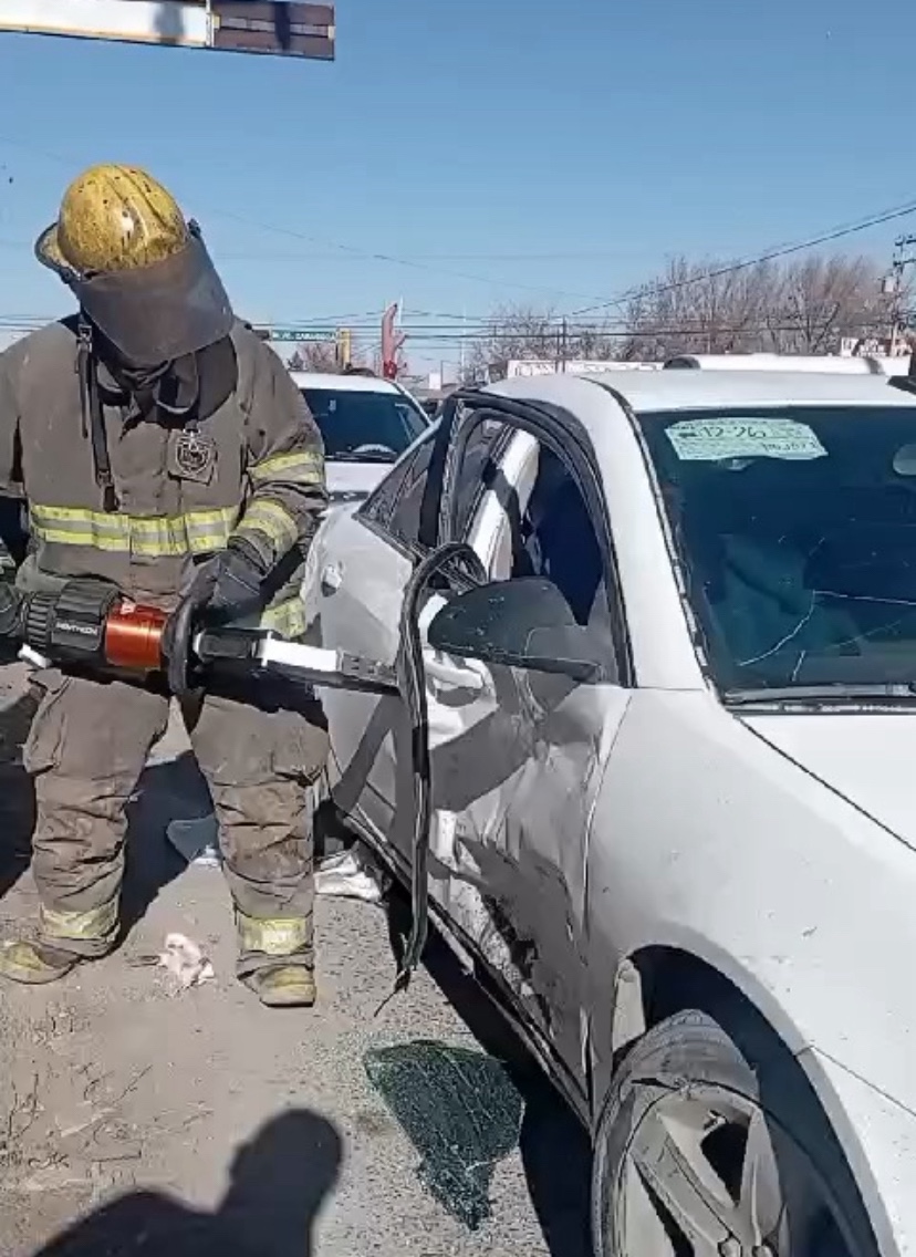 Ciudad Juárez.– Este día se registró un accidente en el cruce de bulevar Zaragoza y Valle del Cedro, donde una mujer embarazada quedó atrapada en el interior de un vehículo.