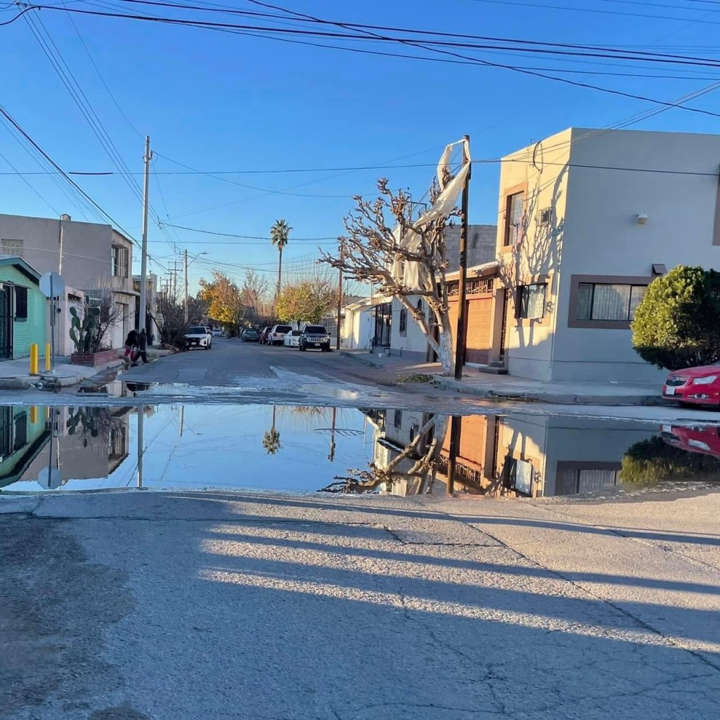 Sin embargo, estas calles cristalizadas todas las mañanas y noches que aparecen en la ciudad son a consecuencia de las fugas de agua potable y los drenajes colapsados que diariamente son reportados a la Junta Municipal de Agua y Saneamiento que no atiende ni le interesa resolver.