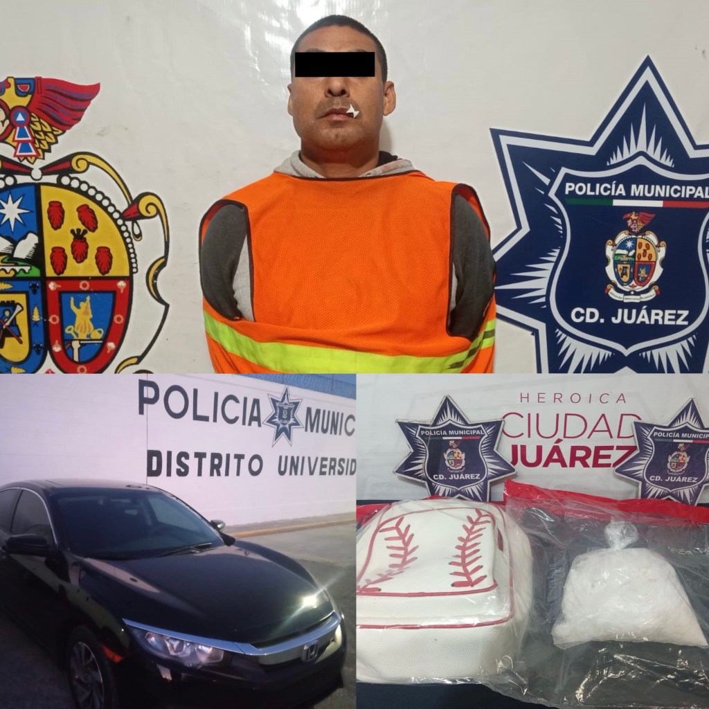 Ciudad Juárez.– Agentes de la Secretaría de Seguridad Pública Municipal detuvieron a Manuel Adrián S.V. de 30 años en posesión de un kilo de cristal, el cual traía oculto en una mochila dentro de su vehículo.