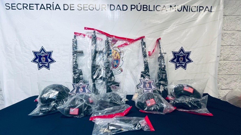 Ciudad Juárez.- La Secretaría de Seguridad Pública Municipal detuvo a varios hombres armados que conducían a exceso de velocidad en la colonia Riveras el Bravo.