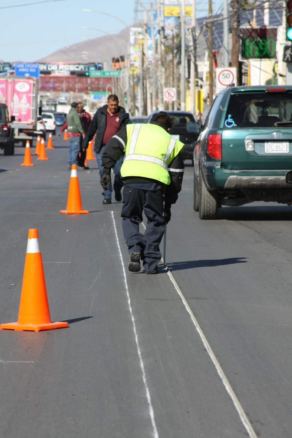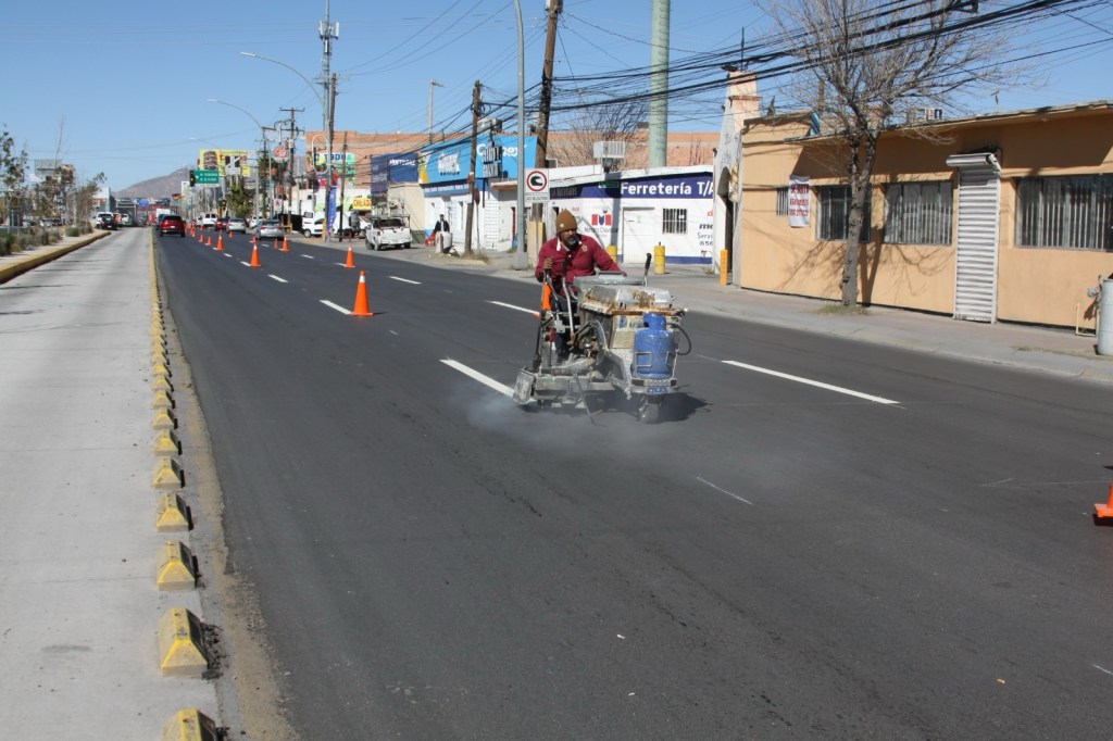 Ciudad Juárez.- La Coordinación General de Seguridad Vial se encuentra realizando trabajos de aplicación de pintura para delimitar los carriles de circulación vehicular del bulevar Manuel Gómez Morín, en el tramo comprendido desde el Paseo de la Victoria hasta la avenida Tecnológico.
