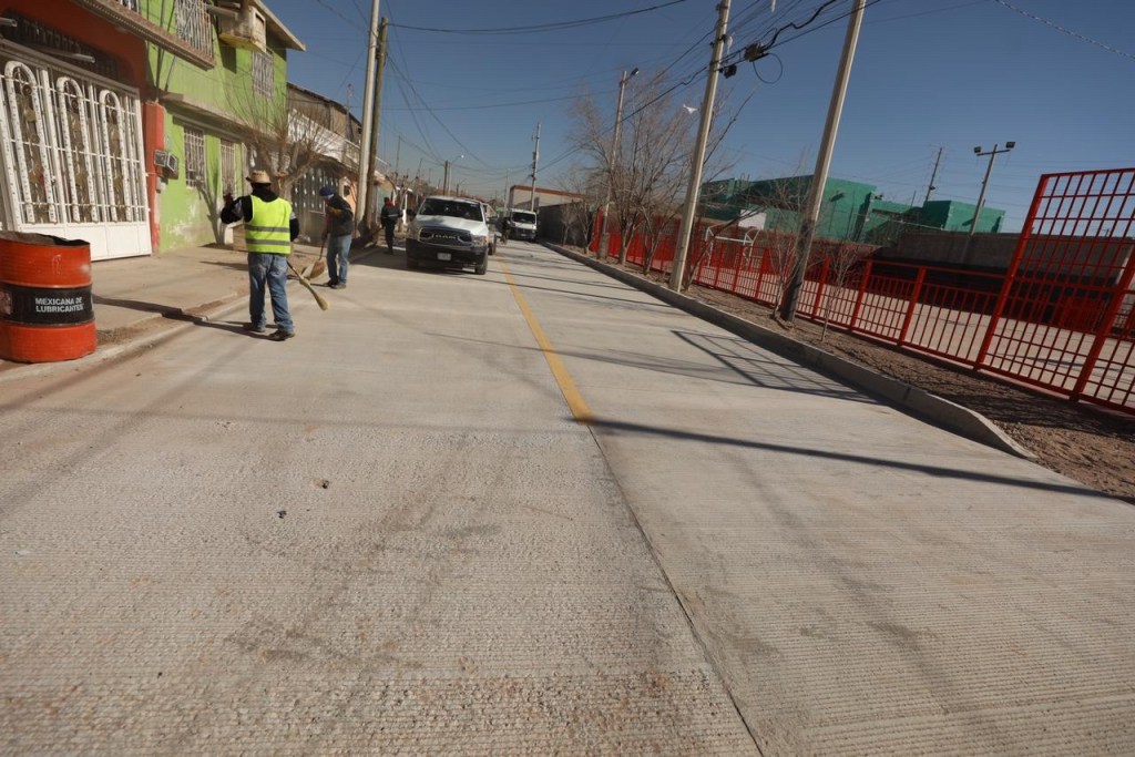 A través del programa 75-25 del Sistema de Urbanización Municipal Adicional (SUMA), se entregó la calle Mezquite Rojo, desde la calle Palmillo a la Almendro, tramo en que se colocó loza de concreto hidráulico en 768 metros cuadrados con un costo de un millón 471 mil pesos. La segunda calle fue la Mezquite Verde, en el tramo de la calle Ajillo a la Almendro, con mil 026 metros cuadrados de concreto hidráulico y una inversión de un millón 749 mil 318 pesos.