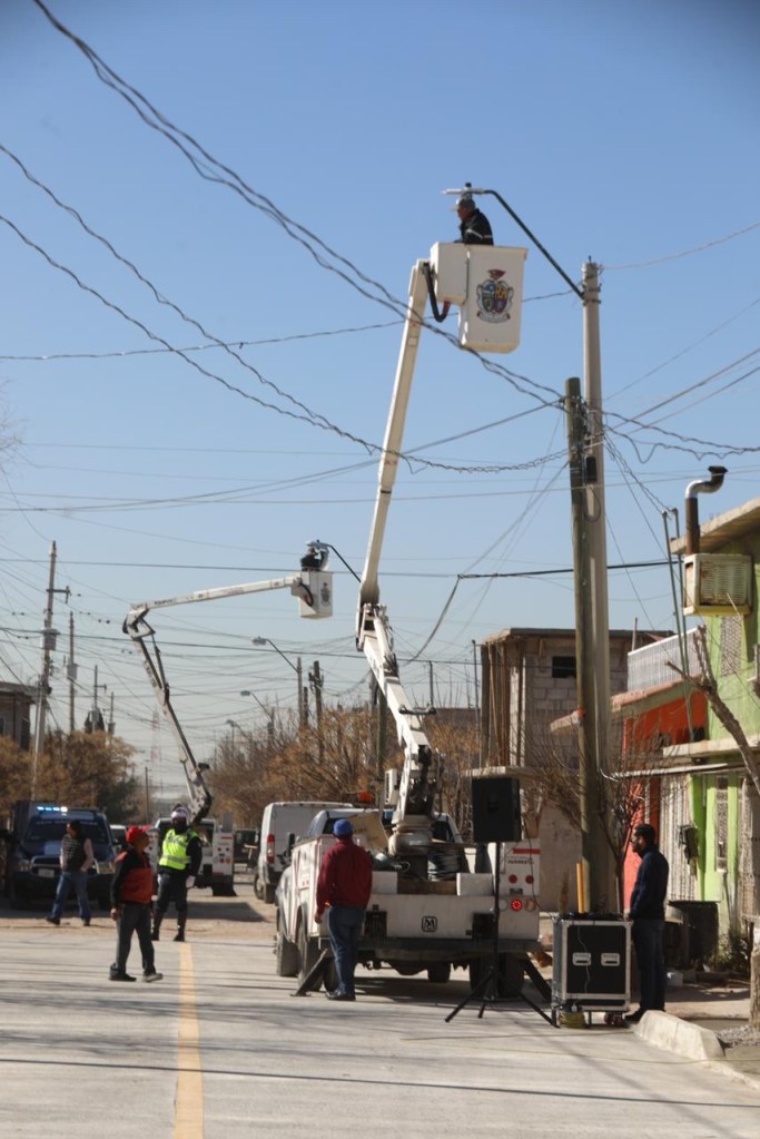Ciudad Juárez.– Este día los vecinos de la colonia El Mezquital celebraron que desde ahora tendrán nuevas luminarias para sus calles que fueron pavimentadas con concreto hidráulico.