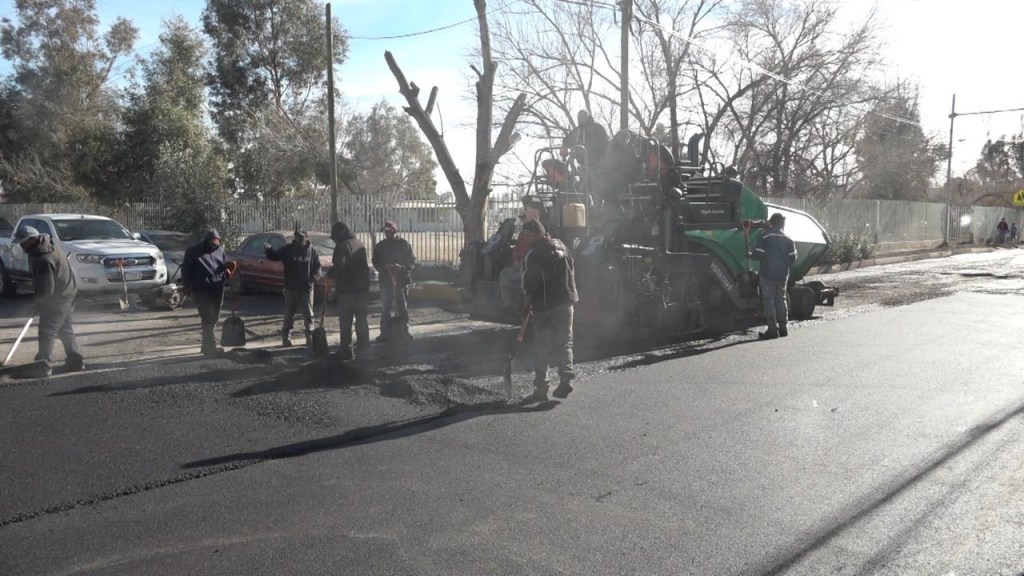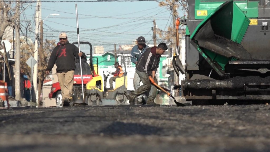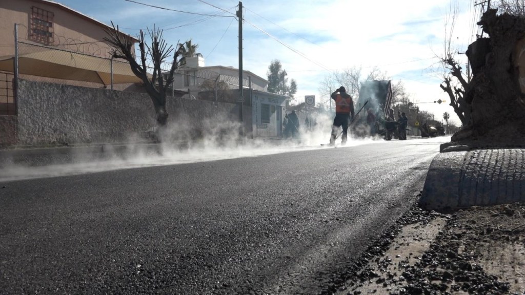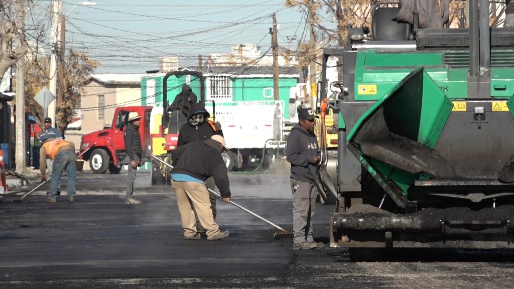 Ciudad Juárez.– Con un 60 por ciento de avance en la repavimentación de la calle Valle de las Peñas de la colonia Infonavit Frontera Nueva, la cual fue intervenida gracias al Presupuesto Participativo.