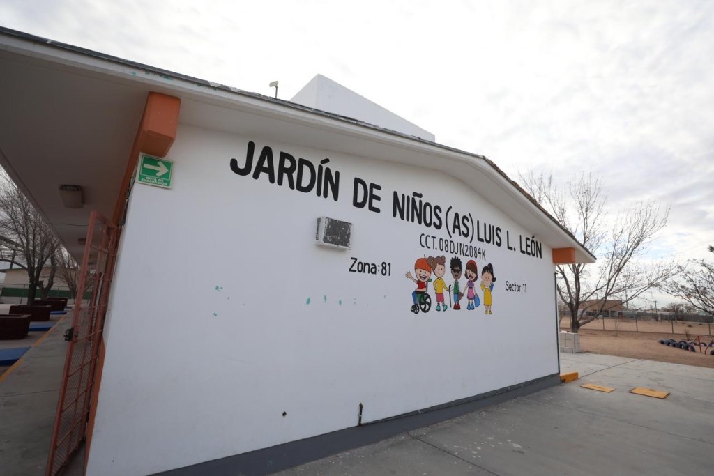 Ciudad Juárez.– El jardín de niños Luis L. León está de manteles largos, y es que el día de hoy fue totalmente rehabilitado en todo el plantel escolar, al cual se le construyó una barda perimetral para seguridad de estudiantes y maestros.