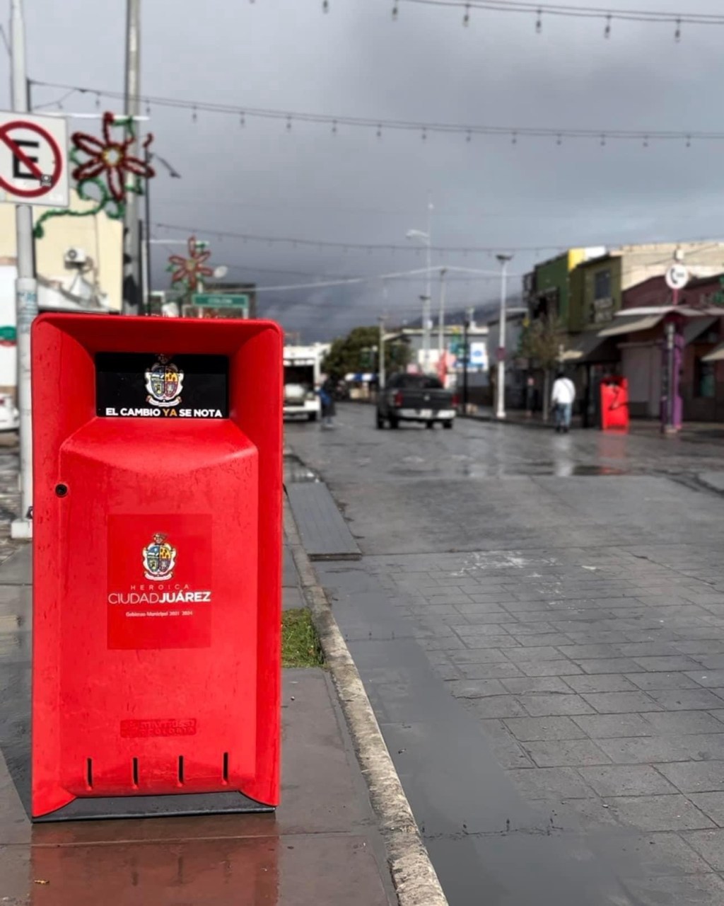 Los botes de basura son material de plástico polietileno de alta resistencia, son cerrados y solo con llave se pueden abrir, son color rojo y con el escudo del municipio de Juárez. Estos contenedores vienen a mejorar la imagen urbana y a fortalecer los trabajos de limpieza del centro histórico, ya que se contempla terminar de colocarlos en las próximas dos semanas.