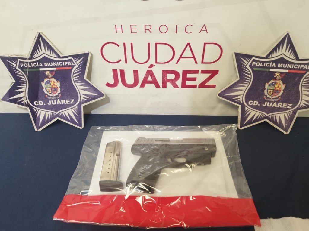 Por lo que implementaron acciones de búsqueda, localizando inmediatamente después del evento, en el cruce de las calles Miguel de Cervantes y Melquiades Alanís, en la colonia Excelencia, a dos sujetos que reunía las características proporcionadas, motivo por el cual los abordaron y al realizarles una inspección preventiva les localizaron un arma de fuego calibre 9 milímetros con su cargador abastecido con cinco cartuchos útiles, procediendo con su detención.