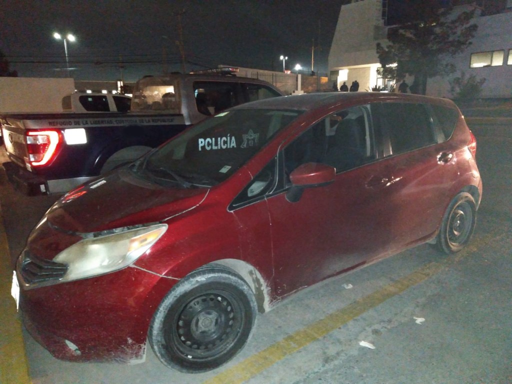 Al arribar al lugar del reporte, se percataron de un grupo de personas a bordo de los dos vehículos, motivo por el cual se acercaron para realizarles una inspección, localizando en medio de los asientos del auto Nissan Versa lo siguiente: