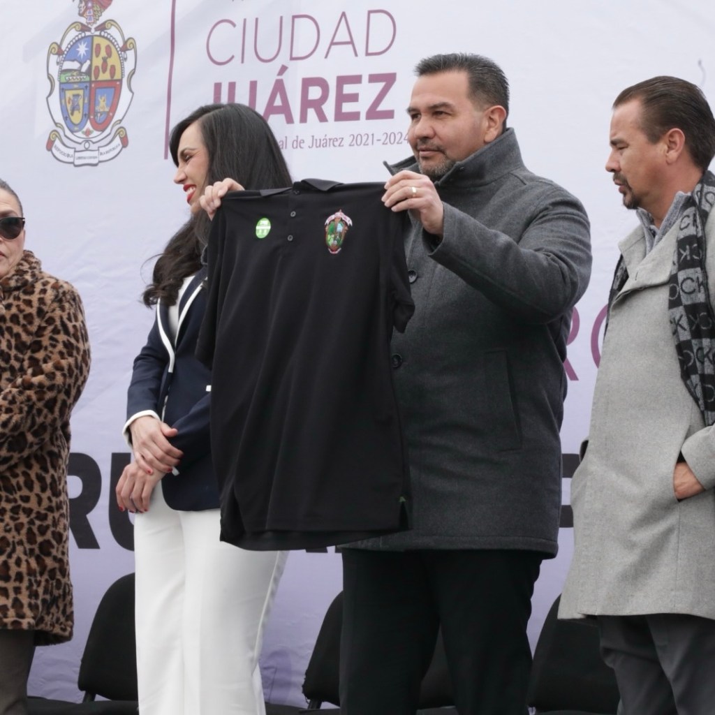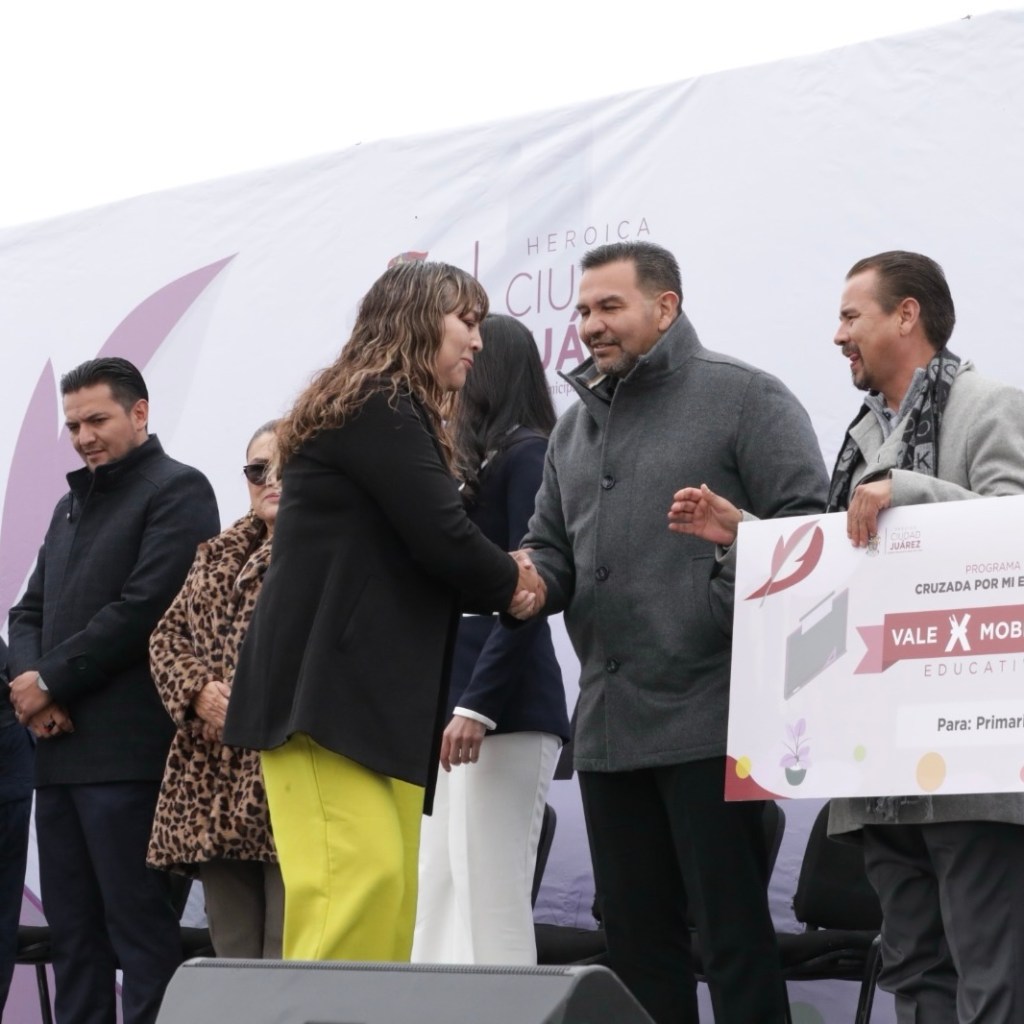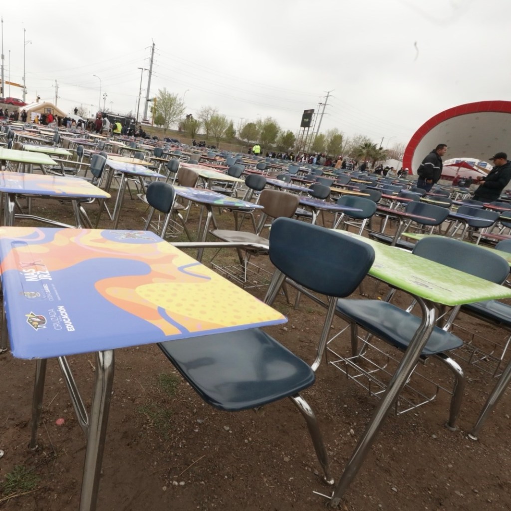 Ciudad Juárez.– Este día en la explanada de la Plaza de la Mexicanidad le fueron entregados mobiliario y dinero a planteles escolares para rehabilitar sus aulas.