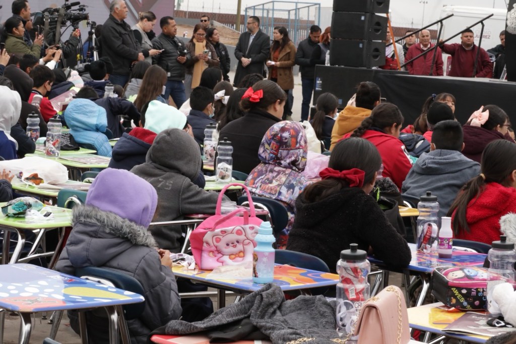“Presidente gracias por ser parte de esto, gracias por tomar en cuenta esta parte de la población que pocas veces se voltea a ver por no representar votos en las urnas. Sabemos de su apoyo a las escuelas con domos, pintura, rehabilitación e impermeabilización y ahora con esta donación demuestra su gran cariño por la niñez y juventud juarense, gracias por estar con nosotros y por no olvidar que somos parte de esta comunidad”, expresó el alumno de tercer grado, Benjamín Gonzalez de la secundaria federal número 5.