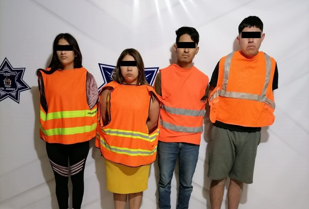 Ciudad Juárez.- Policías municipales detuvieron a Stephanie Yamilet D. M. de 19 años, Jesús R. E. de 26 años, Joshue Isaías D. G. de 23 años e Irma María E. C. de 29 años, por delitos de Privación Ilegal de la Libertad toda vez que tenían cautivos a una familia de migrantes en la colonia Horizontes del Sur.