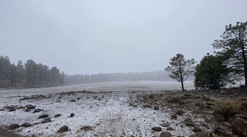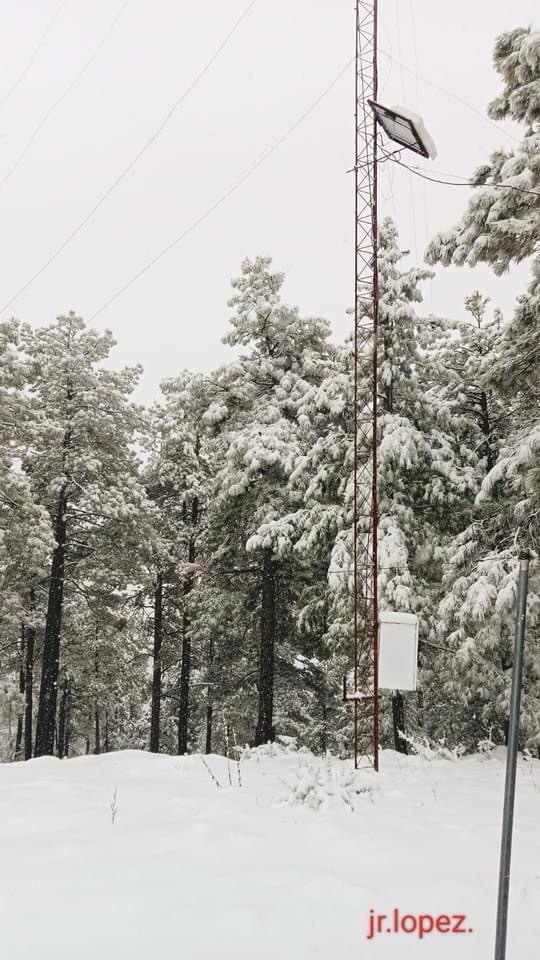 Madera.- En redes sociales comenzaron a circular imágenes y videos de la nevada que se vivió el día de hoy en el municipio de Madera, Chihuahua, digna de una postal.