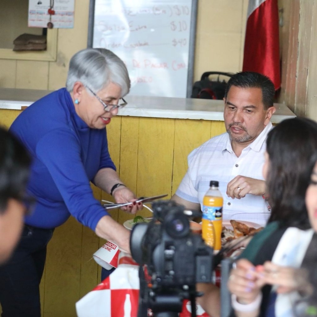 El alcalde Cruz Pérez Cuéllar invitó a los juarenses a consumir en negocios locales que benefician a toda la comunidad y fomentan la economía, por lo que hoy puso su granito de arena al comerse unos ricos pollitos.