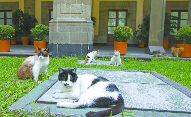 Ciudad de México.– En los jardines del Palacio Nacional, donde radica el Poder Ejecutivo Federal, es común convivir con 19 gatos, hasta más, que son cuidados y alimentados por personal del gobierno federal.
