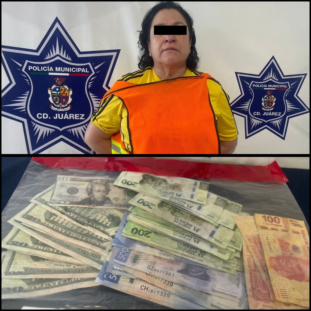 Ciudad Juárez.- Una mujer de nombre Maribel C.O. de 42 años, fue detenida por elementos de la policía municipal por el delito de Falsificación de Moneda, cuando le pagó a un vendedor ambulante con billetes falsos.