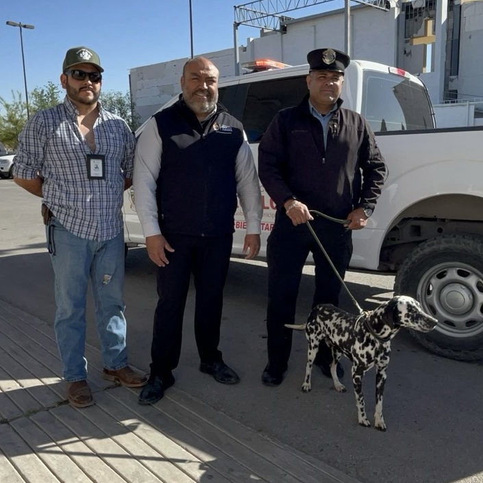 Ciudad Juárez.– Un canino de dos años de edad, de la raza Dálmata, fue entregado al Heroico Cuerpo de Bomberos este día por la Dirección de Ecología.
