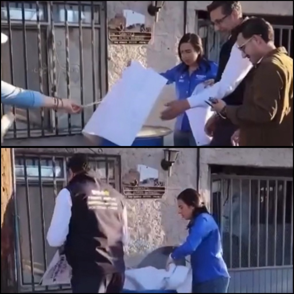 En el video que circula en redes sociales se observa a los candidatos por la alcaldía y la diputación por el distrito 04 federal, quitar la lona y echarla a la basura.