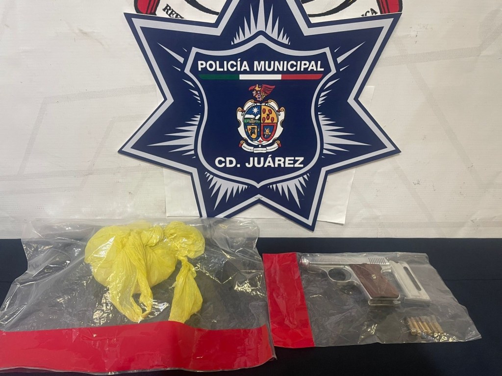 Ciudad Juárez.– Un taxista de nombre Guillermo T.G. de 34 años, fue detenido por elementos de la policía municipal luego de que al realizarle una revisión se le encontró un arma de fuego y droga.