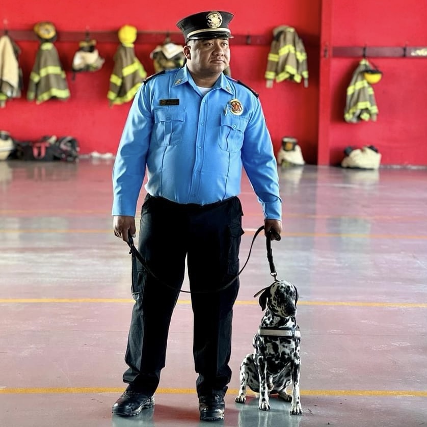 Ciudad Juárez.– El Heroico Cuerpo de Bomberos ha bautizado a su nuevo integrante con el nombre de Marshall, el perrito Dálmata rescatado y donado por el RAMM.