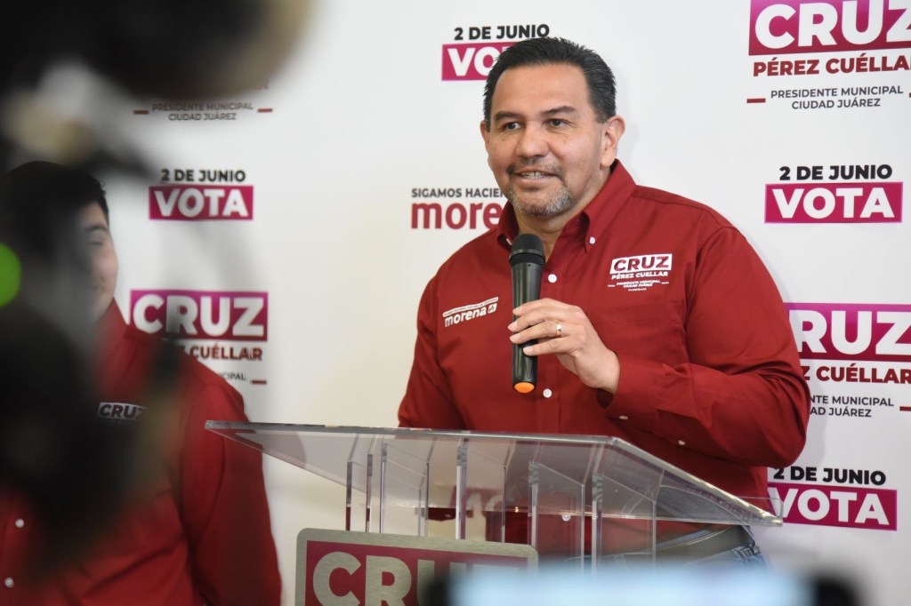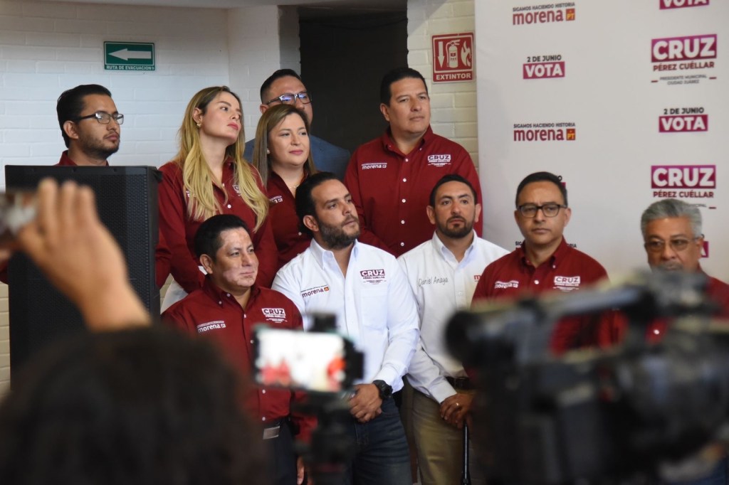 Ciudad Juárez .- El candidato a la presidencia municipal por la coalición Morena-PT, Cruz Pérez Cuéllar, presentó a quien lo estará acompañado durante este periodo electoral, quienes cuentan con amplia experiencia.
