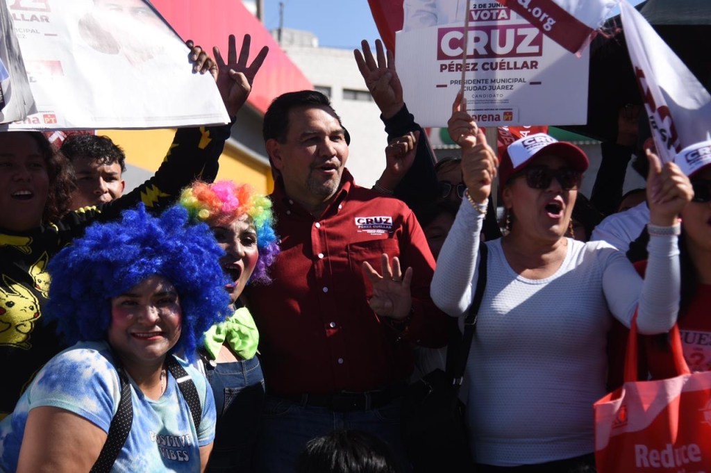 Ciudad Juárez.– Continuando con los cruceros y acercamientos con la población juarense, el candidato a la presidencia municipal por la coalición Morena-PT, Cruz Pérez Cuéllar, saludo y recibió apoyo de los ciudadanos.