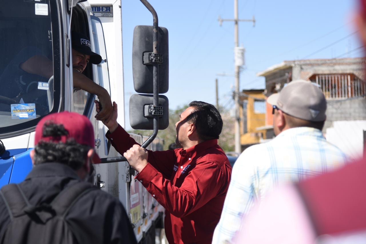 Mediante bocinazos y palabras de apoyo, el candidato saludó a peatones y conductores en el crucero ubicado en las calles bulevar Zaragoza y Durango, donde le pedían la tradicional foto con el candidato.