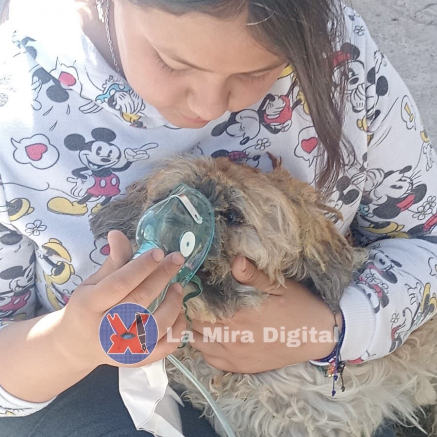 Un medico veterinario le brindó auxilios a los perritos que sufrieron intoxicación y descartó quemaduras en el canino.