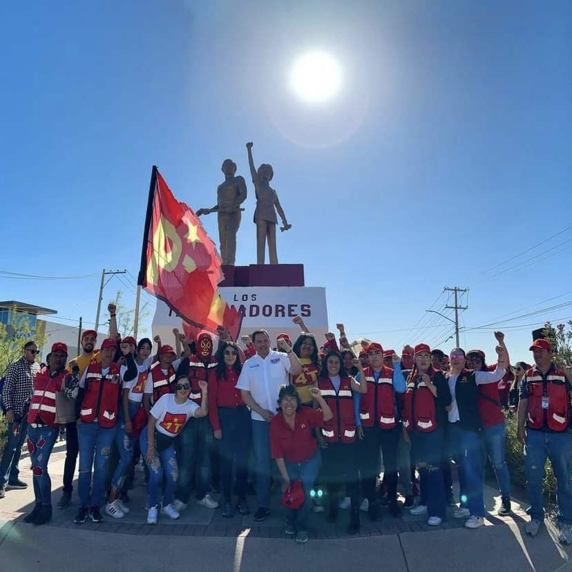 Ciudad Juárez.– En un evento reciente, el candidato a la Alcaldía Municipal, Cruz Pérez Cuéllar, acompañado por sus simpatizantes, se reunió en el monumento a los trabajadores para rendir homenaje con una ofrenda floral.