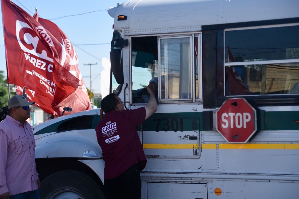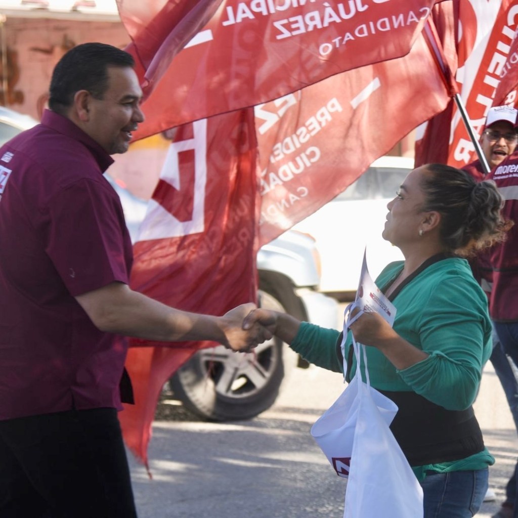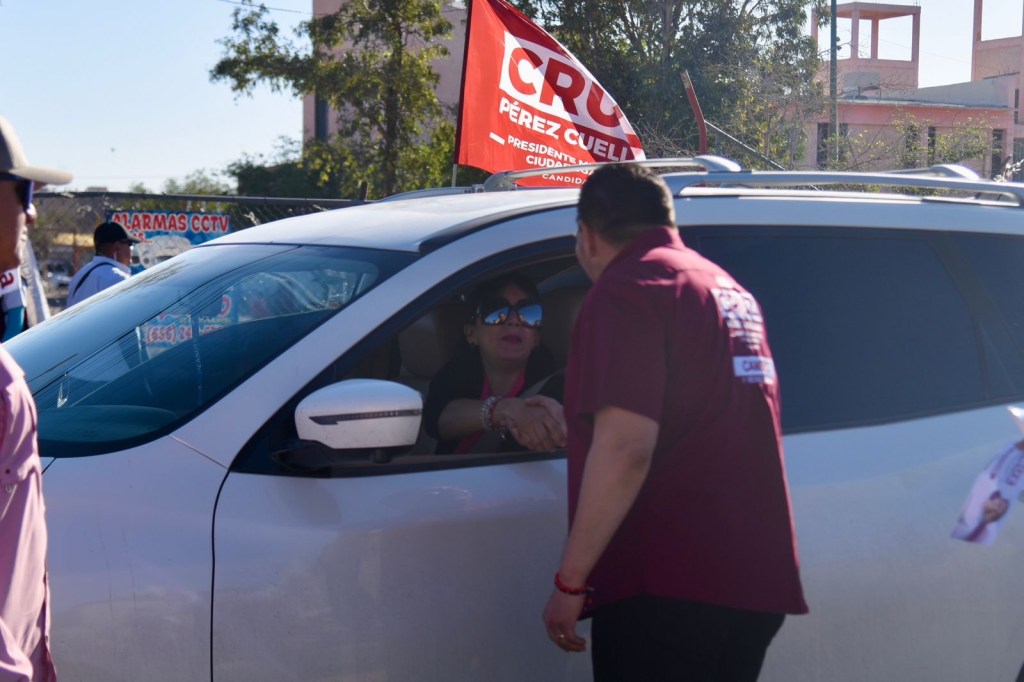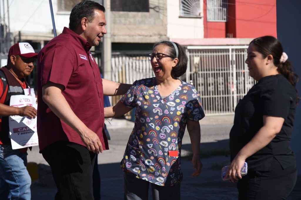 Ciudad Juárez.– Cruz Pérez Cuéllar, candidato a la presidencia municipal por la coalición Morena-PT, recorrió la colonia ampliación aeropuerto para continuar su cercanía con la población y llevarles sus propuestas.