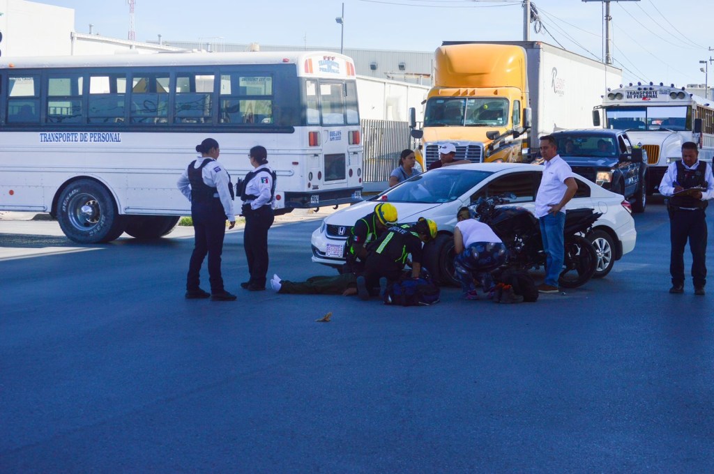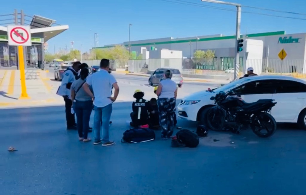 Ciudad Juárez.– Un motociclista quedó lesionado luego de impactarse con un automóvil en bulevar Zaragoza y avenida De las Torres.